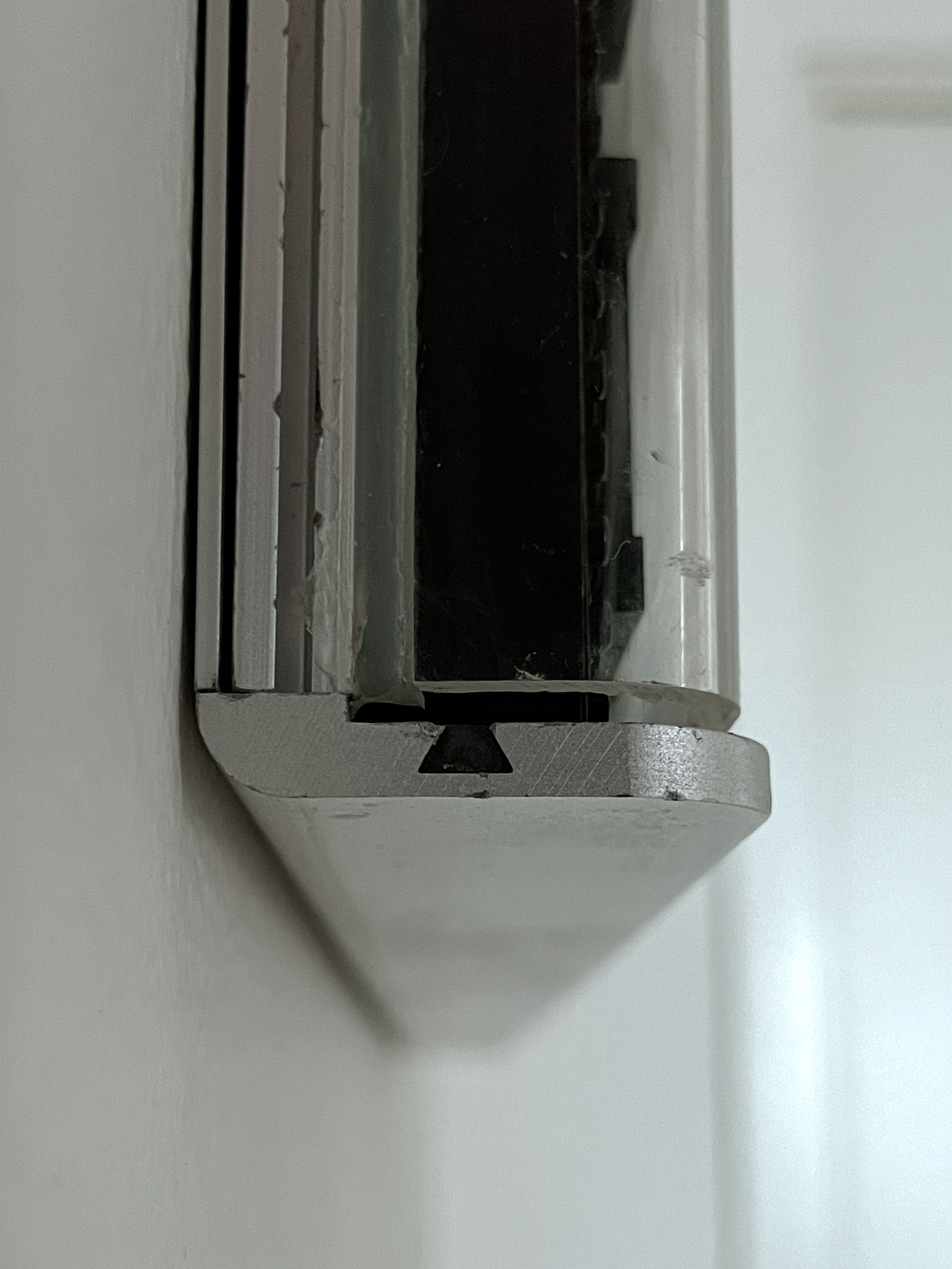 – acrylic front with curved edges (showing age-related surface wear)